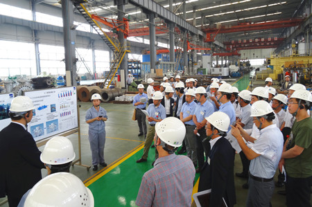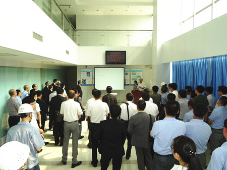 這次生產(chǎn)革新大會的目的是加速推進荏原集團內(nèi)部各工廠的生產(chǎn)革新活動的開展,目標是生產(chǎn)周期減半、庫存減半、最大限度地提高生產(chǎn)效率,降低成本,增強企業(yè)競爭力。通過生產(chǎn)革新活動,達到從現(xiàn)場改善提升到管理系統(tǒng)改善、人的改善的目標,使“產(chǎn)品制作”流程優(yōu)化。在這次大會上,公司總經(jīng)理王正軍向與會代表介紹了EMZ的經(jīng)營發(fā)展狀況,并帶領(lǐng)與會人員參觀工廠,詳細介紹了生產(chǎn)革新的進展情況。