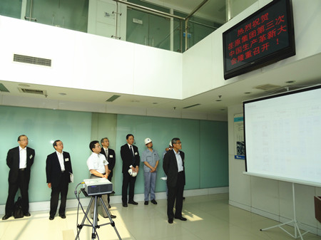 新聞中心2015年5月26日,荏原集團第三次中國生產(chǎn)革新大會在我公司召開。這次大會,由荏原集團在中國包括臺灣的八家海外工廠組成,各公司的主要負責(zé)人及技術(shù)人員共70余人參加了會議。荏原集團風(fēng)水利公司領(lǐng)導(dǎo)大井專務(wù)取締役、小瀉常務(wù)取締役、野路常務(wù)取締役、寺垣常務(wù)及我公司董事長井上貴雄到會并講話。
